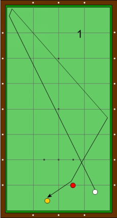 vor der li. ob. Ecke die 1. (lg.) Bande berühren. B 2: