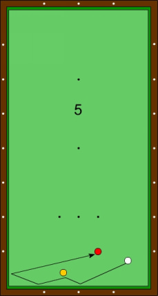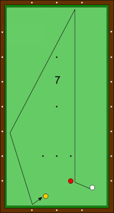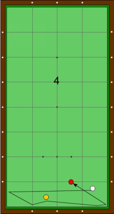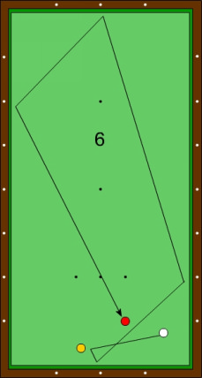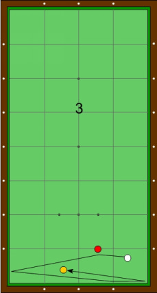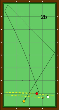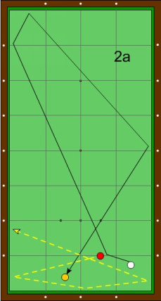 Der Zielpunkt an der langen Bande liegt wenig links der Horizontalen