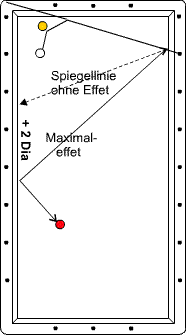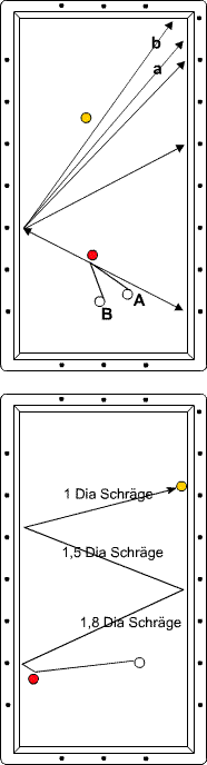 Der Abschlag nach der 2. (zur 3.) Bande kürzt, wenn die
