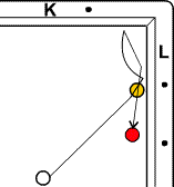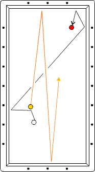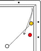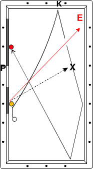 Fast rechtwinklig zu linken Bande spielen. Es entwickelt sich