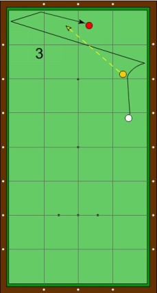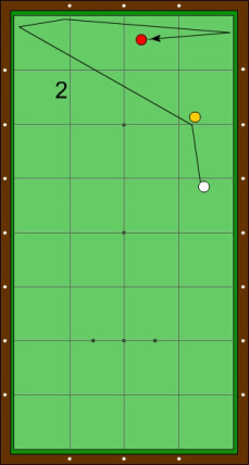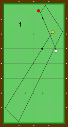 soeben vor der ob. li. Ecke an die linke lange Bande gelangt.